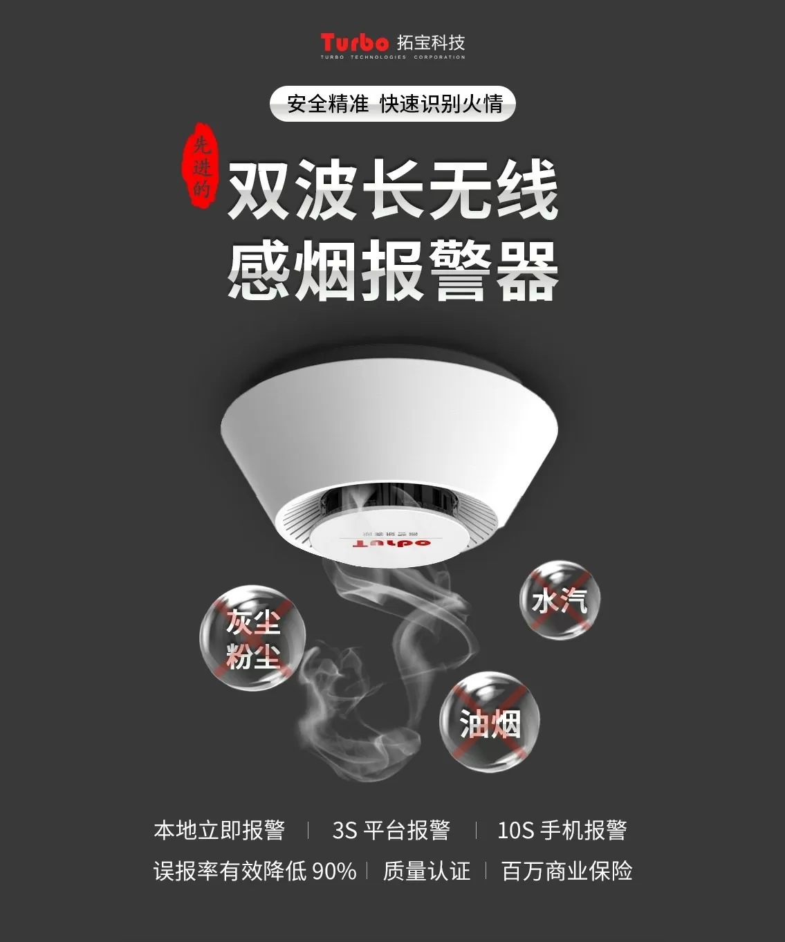 · 双波长技术:有效降低误报率,抗水雾、油雾等;